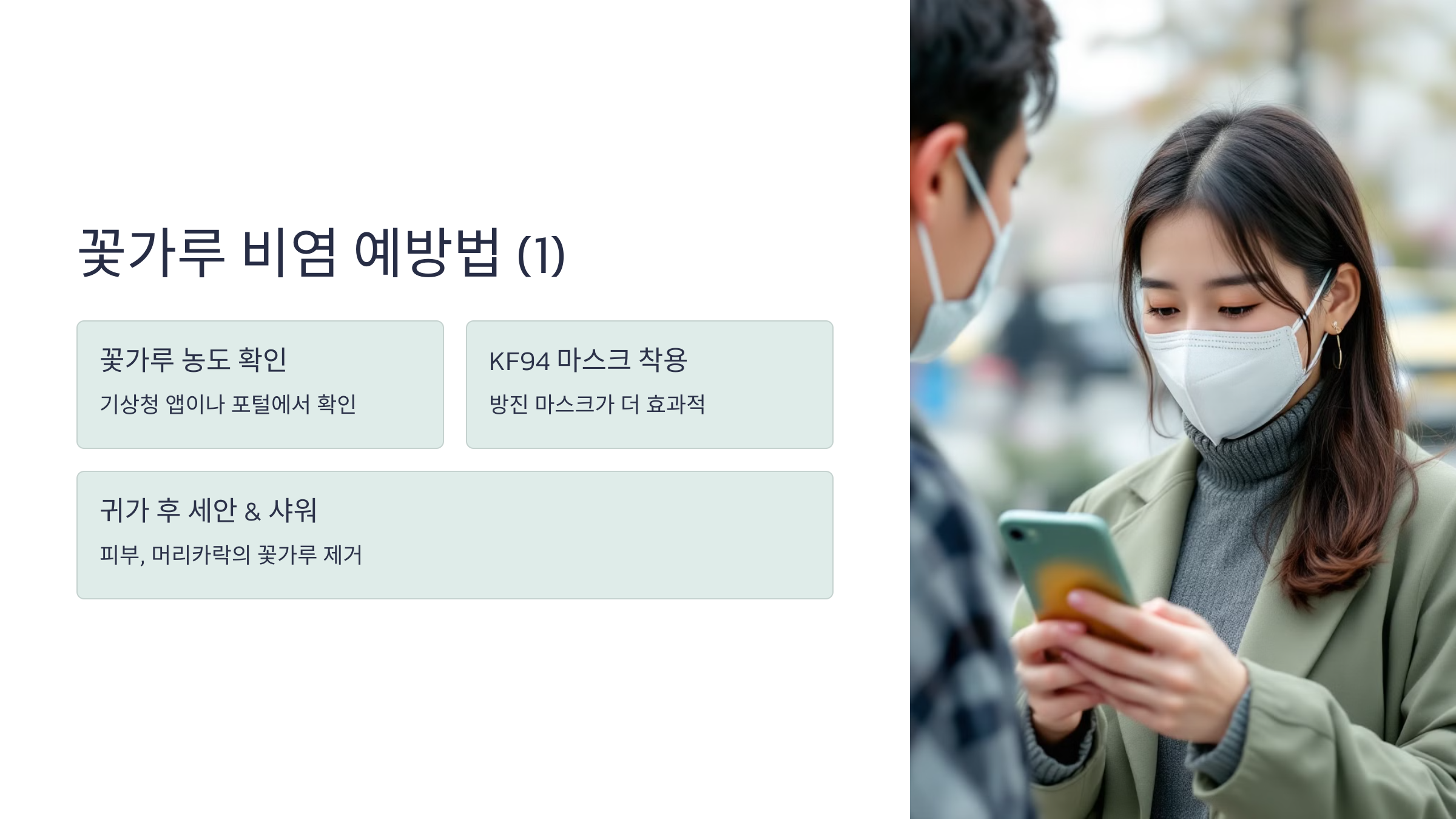 📌 파일명 예시: pollen-allergy-tips.jpg / ALT 태그: “꽃가루 비염 예방 수칙 인포그래픽”