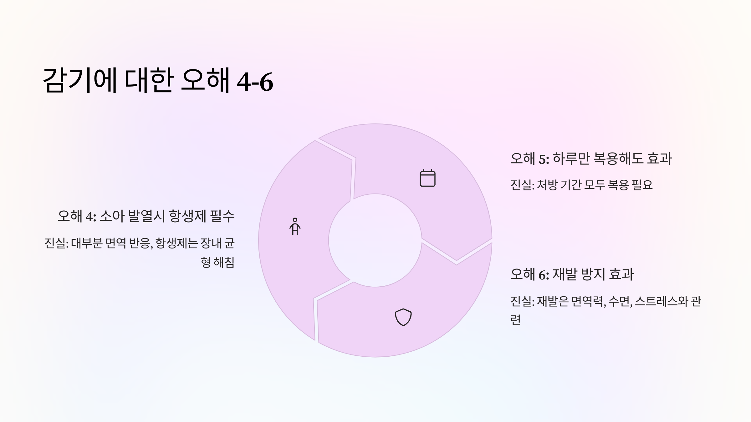 👉 진실: 감기 재발은 면역력 저하, 수면 부족, 스트레스 등과 관련이 있습니다.